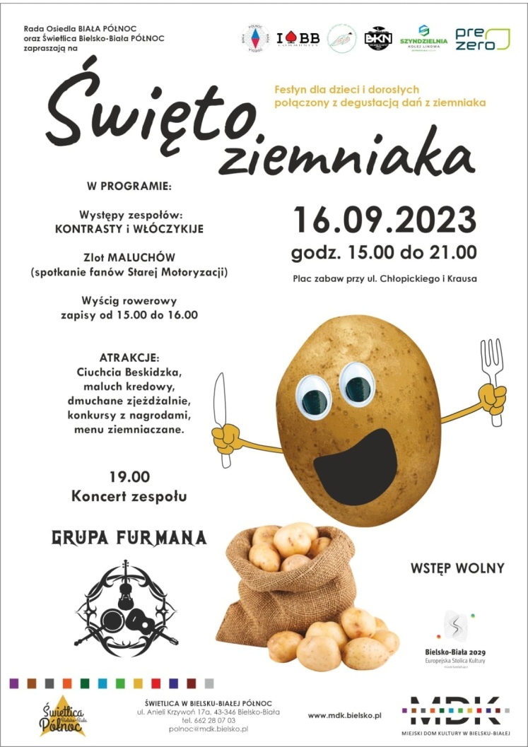 Rada Osiedla Biała Północ oraz Świetlica Bielsko-Biała Północ zapraszają na "Święto ziemniaka", które w tym roku odbędzie się w sobotę 16 września na placu zabaw przy ul. Chłopickiego i Krausa.