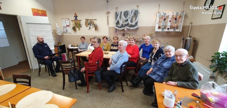 Bezpieczeństwo seniorów jest tematem bardzo aktualnym i coraz szerzej poruszanym. Poprawa bezpieczeństwa seniorów wymaga nieustannej pracy, tak aby minimalizować skutki pojawiających się coraz to nowych zagrożeń. Dlatego 11 stycznia 2024 r. w ramach programu „Bezpieczny Senior” asp. Dawid Bożek i sierż. Sławomir Wojewodzic - dzielnicowi z Komisariatu Policji IV w Bielsku-Białej spotkali się z seniorami.