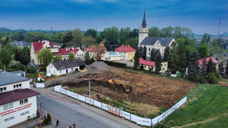 Przy ulicy Olimpijskiej, a konkretnie na niezagospodarowanej działce znajdującej się naprzeciwko Domu Kultury i OSP, rozpoczeła się budowa budynku usługowo-handlowego.