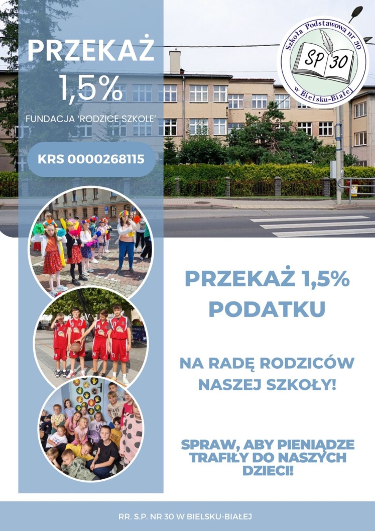 1,5% podatku na rzecz Szkoły Podstawowej nr 30
