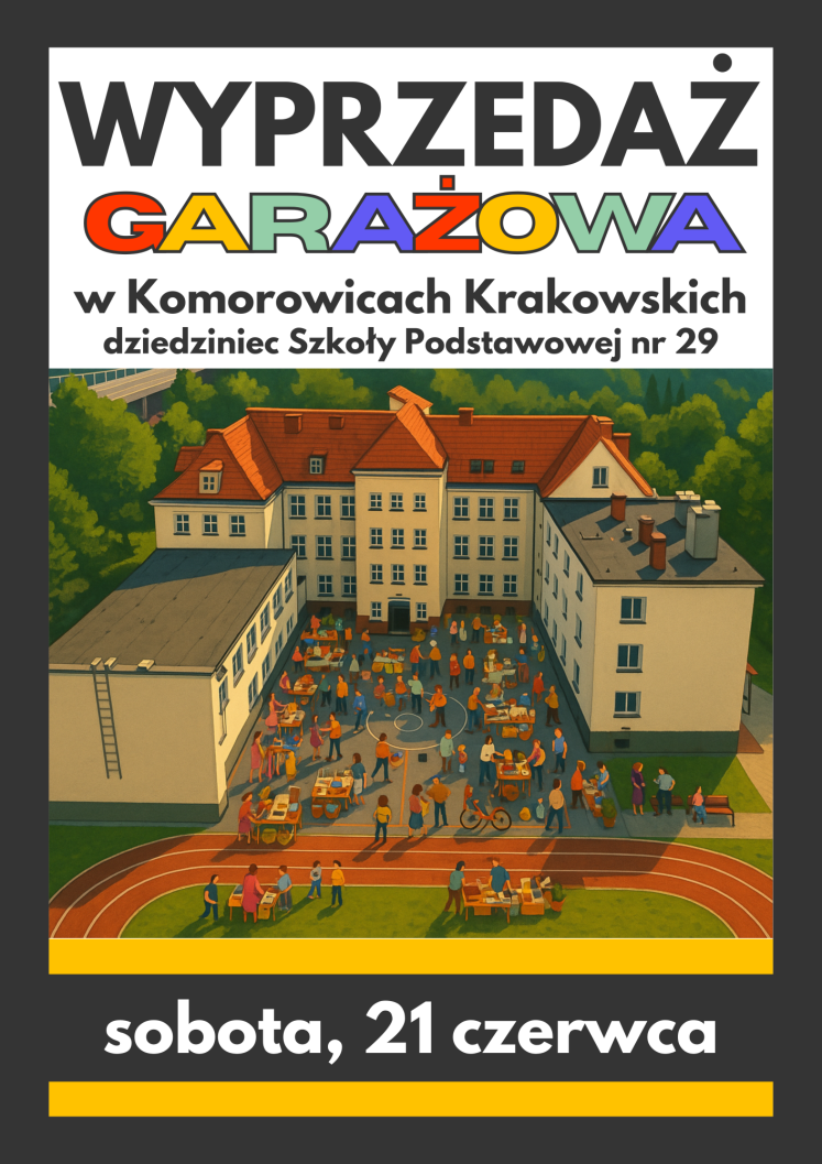 Po latach przerwy wraca wydarzenie, na które czekało wielu mieszkańców - wyprzedaż garażowa w Komorowicach Krakowskich! Już w sobotę, 21 czerwca w godz. 9:00-13:00, dziedziniec Szkoły Podstawowej nr 29 zamieni się w tętniący życiem targ pełen przedmiotów z duszą.