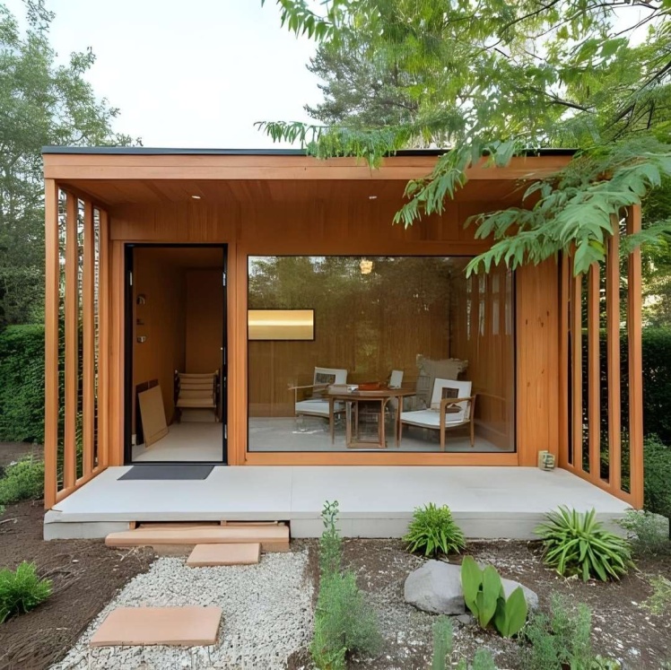 Kolorystyka powinna być stonowana - naturalne odcienie drewna, szarości, zielenie. Unikaj intensywnych barw, które mogą kłócić się z krajobrazem. Im bardziej domek „wtapia się” w otoczenie, tym przyjemniej się w nim przebywa.