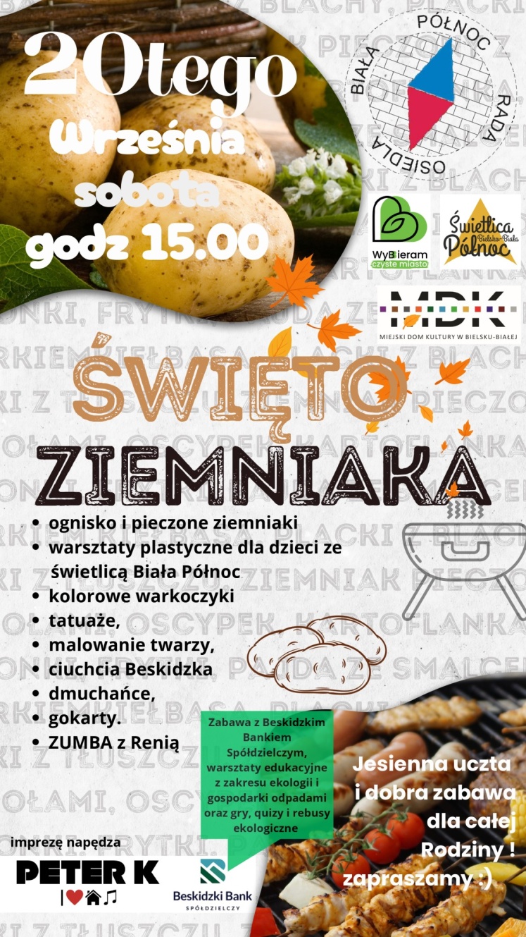Tuż za miedzą, u naszych sąsiadów w dzielnicy Biała Północ, odbędzie się wyjątkowe wydarzenie, na które tradycyjnie zapraszamy również mieszkańców Komorowic. W sobotę, 20 września o godz. 15.00, na parkingu przy ulicy Krausa zorganizowane zostanie radosne Święto Ziemniaka.