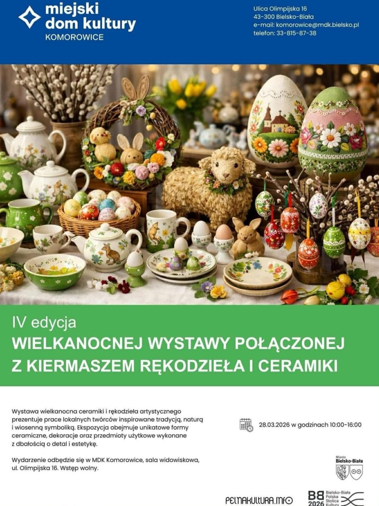 W sobotę 28 marca Miejski Dom Kultury w Komorowicach zaprasza mieszkańców na IV edycję Wielkanocnej Wystawy połączonej z kiermaszem rękodzieła i ceramiki. W programie znalazły się nie tylko stoiska z pracami lokalnych twórców, ale również rodzinne warsztaty oraz ogłoszenie wyników konkursu na kartę wielkanocną.