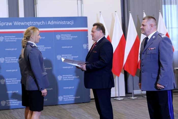 Jarosław Zieliński, sekretarz stanu w MSWiA, wyróżnił w środę 26 funkcjonariuszy - bohaterów na służbie i poza służbą. Nagrodzeni pomagali ofiarom wypadków drogowych, ratowali poszkodowanych w pożarach i tonących. Wyróżnienie i nagrodę finansową otrzymała również pochodząca z Komorowic sierż. szt. Marta Waliczek.