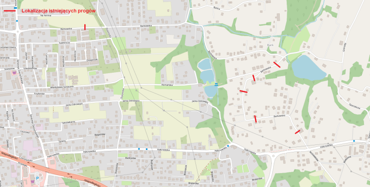 Lokalizacja istniejących progów na ul. Barkowskiej: