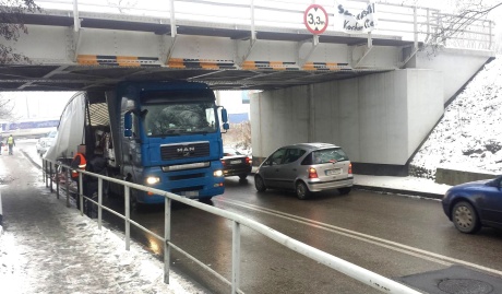 To już kolejny kierowca, który zignorował znaki ograniczenia wysokości na wiadukcie kolejowym w Komorowicach Śląskich.